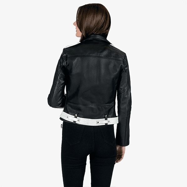 Shop this Women’s Black and White Biker Jacket on Discount