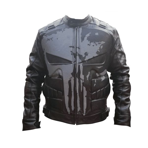 Shop this Punisher-Inspired Black Motorcycle Leather Jacket on Discount